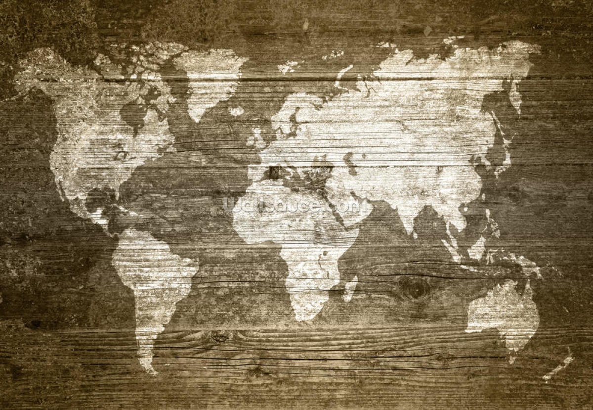 Achieve a unique world map feature wall with this custom-made World Map on Wood wallpaper.