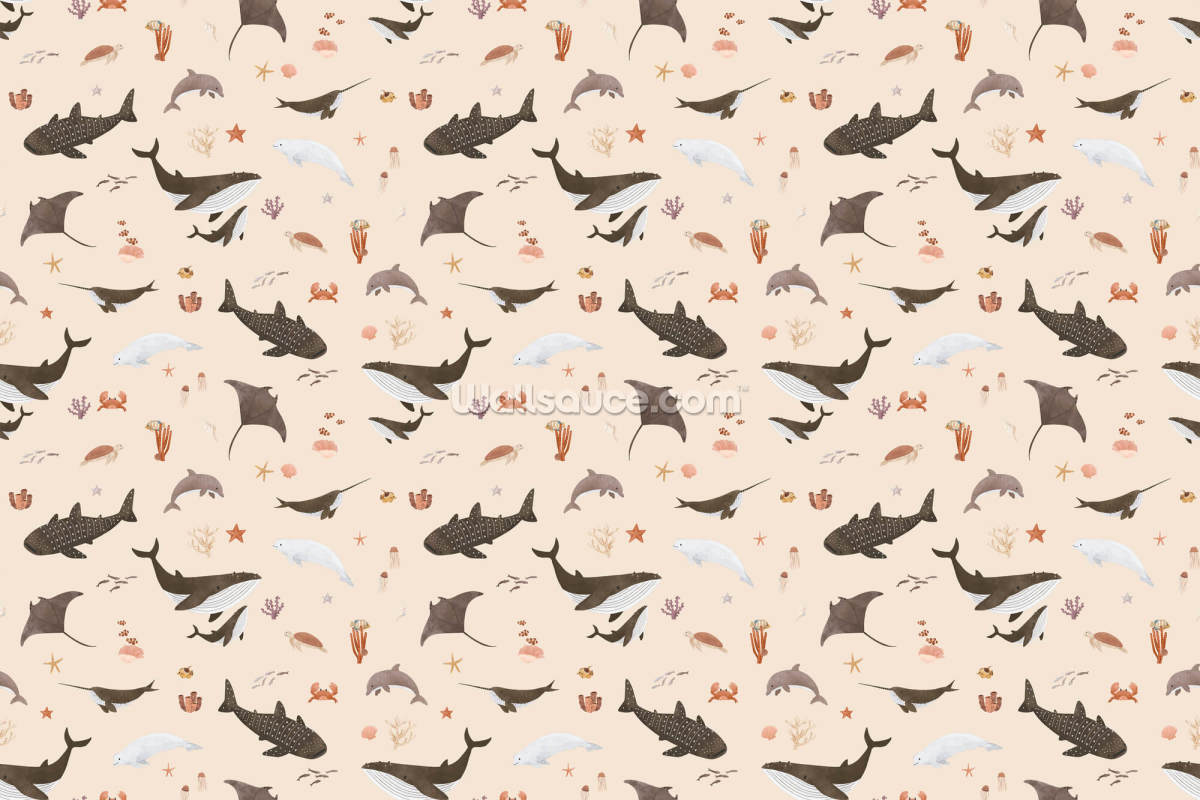 Forvandle barnets soverom eller lekerom med dette fengslende beige tapetmaleriet for sjøliv kalt Beige Splendid Sea av Kikki Belle.