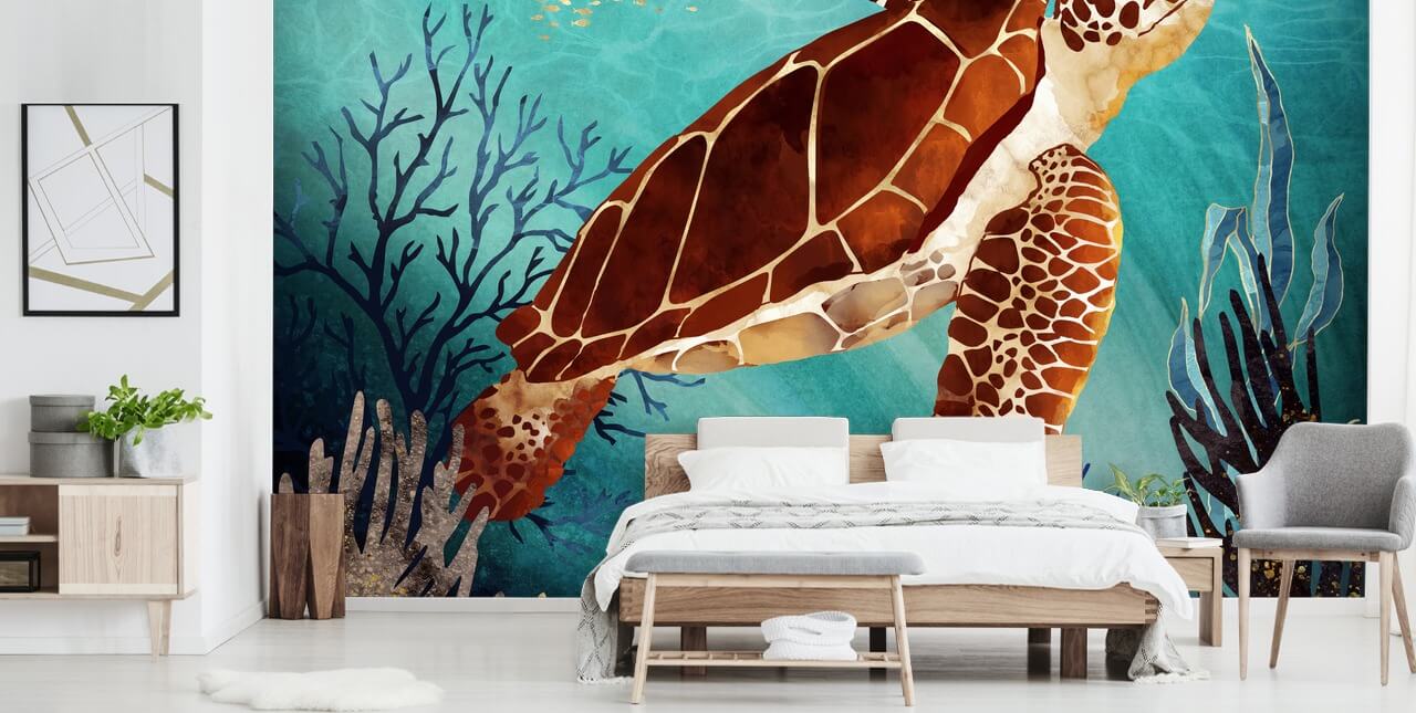 Bring the beauty of the ocean into your home with this custom-made Sea Turtle wallpaper mural.