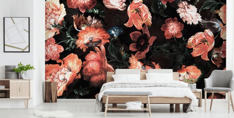 vintage blush exotic peonies and tropical fruits garden wallpaper