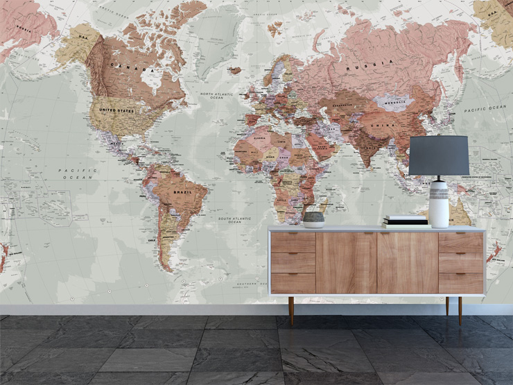 Modern and contemporary looks can be easily achieved using a plain floor tile and bright wallpaper combination. This will allow the wall colours to stand out against the more simplistic flooring base.