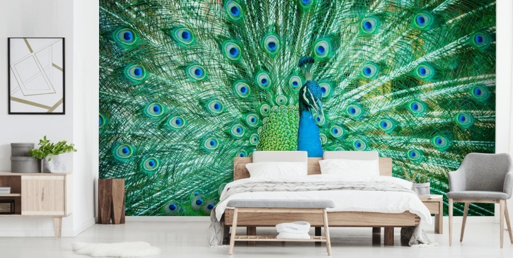 colourful painted peacock wallpaper called Oil Painting Peacock for bedrooms and living rooms