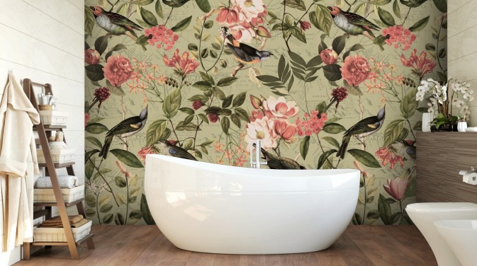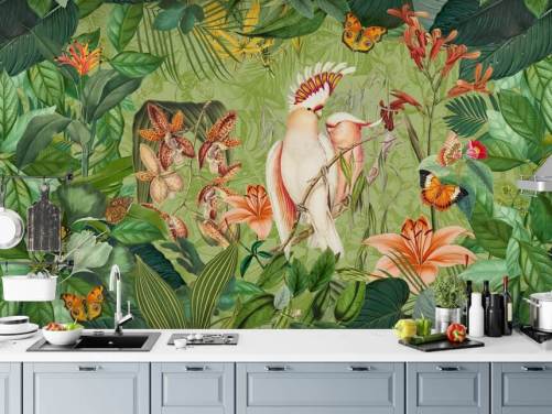 pink cockatoo wallpaper mural called Spring Garden with Cockatoo by Andrea Haase for bedrooms