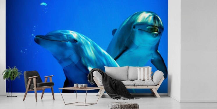 Two Dolphin Friends Smiling at Camera Wall Mural