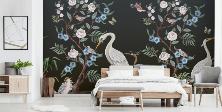 custom chinoiserie tree with birds wallpaper mural called Calm Chinoiserie Tree for bedrooms
