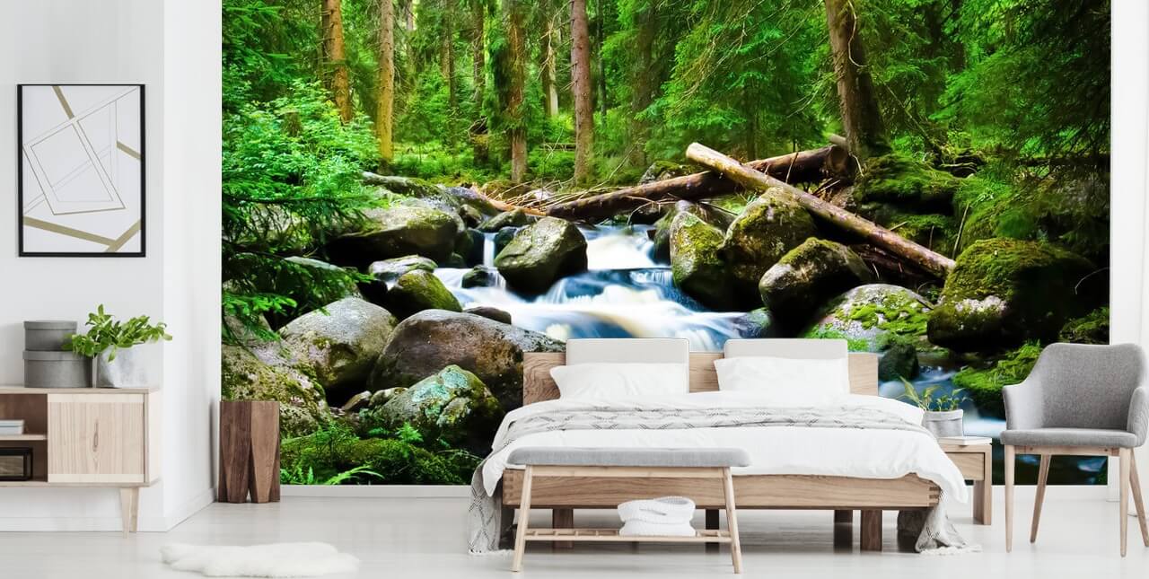 This beautiful forest wallpaper is not only great for creating a motivational atmosphere in an office but a calming ambiance in a master bedroom. Choose décor with natural tones, such as natural wooden furniture and accessories with touches of green and blue in them to bring out the shades in this awe-inspiring photograph.
