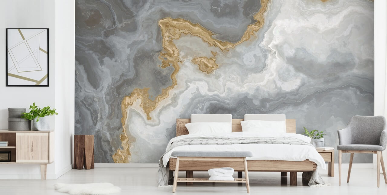 Elegant Grey and Gold Marble wallpaper is available in each of our paste the wall materials and our textured peel and stick. When entering your featured wall's dimensions, remember to add a little extra to the wall's measurements so your Elegant Grey and Gold Marble mural can be trimmed to perfection.