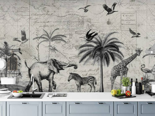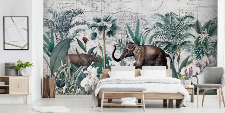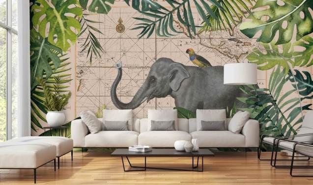 elephant and bird map and jungle wallpaper