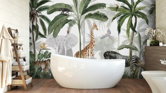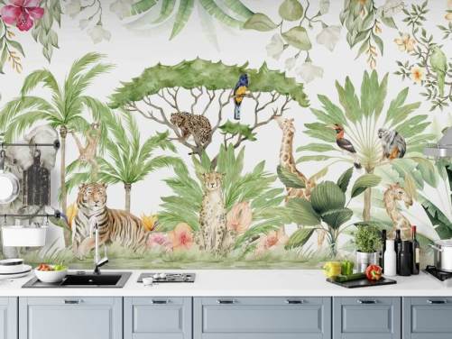 animals from all over the world in jungle wallpaper