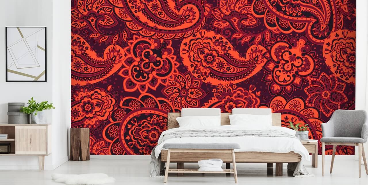 Love colour? Then you will LOVE this custom-made Fiery Red Exotic Patterns wallpaper.