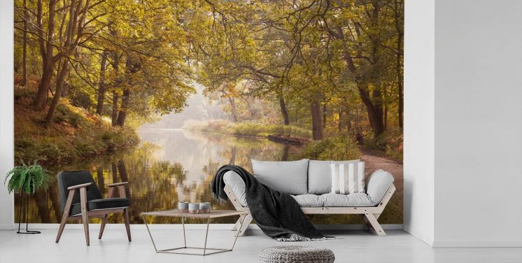 brown and grey canal in winter woodland wall mural by Assaf Frank for bedroom
