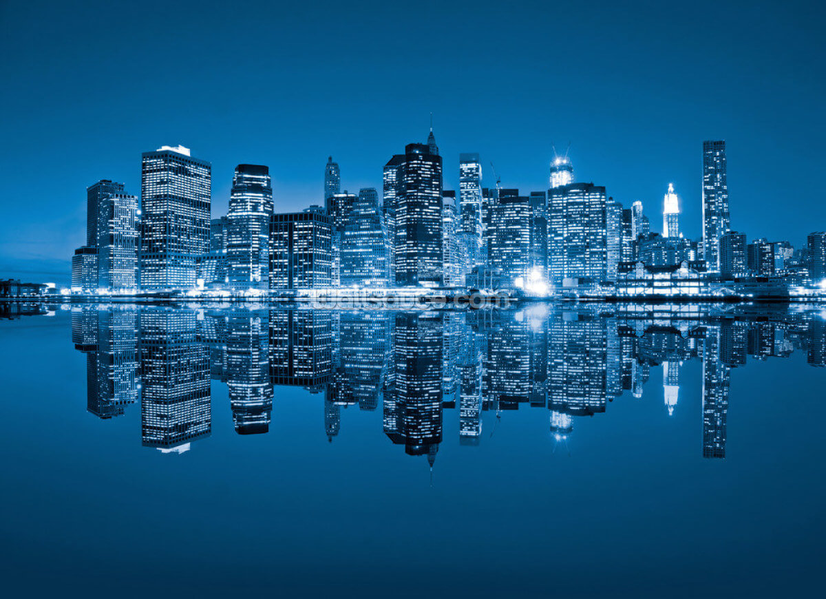 This Manhattan mural in rich blues captures the stunning skyline viewed over the Hudson River. Hang this mural in any room including bedrooms, living rooms, games rooms and even workplaces and transform your space! Choose to decorate around this New York wallpaper with shades of blues or dark navies to create a dramatic, eye-catching look.