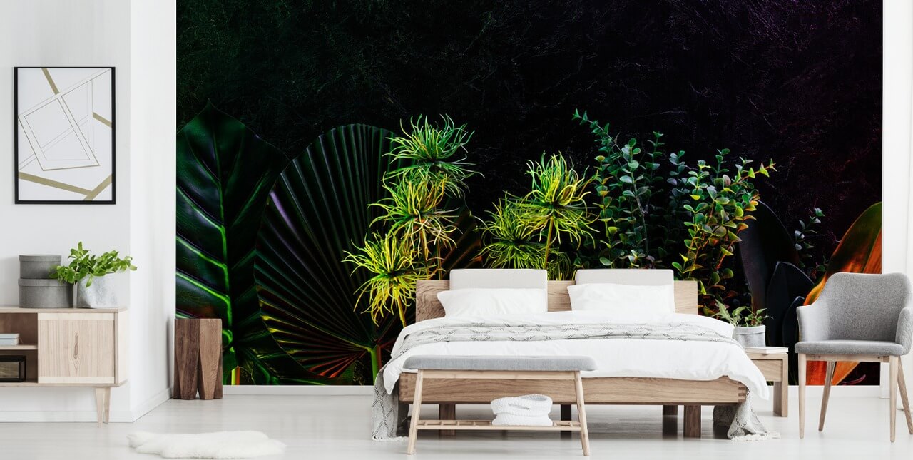 Install this on-trend Moonlit Tropical Plants wallpaper. Available in peel and stick or paste the wall wallpaper.