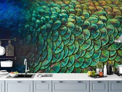 green and blue customisable peacock wallpaper called Fantastic Peacock Kings for kitchens, living rooms and bedrooms