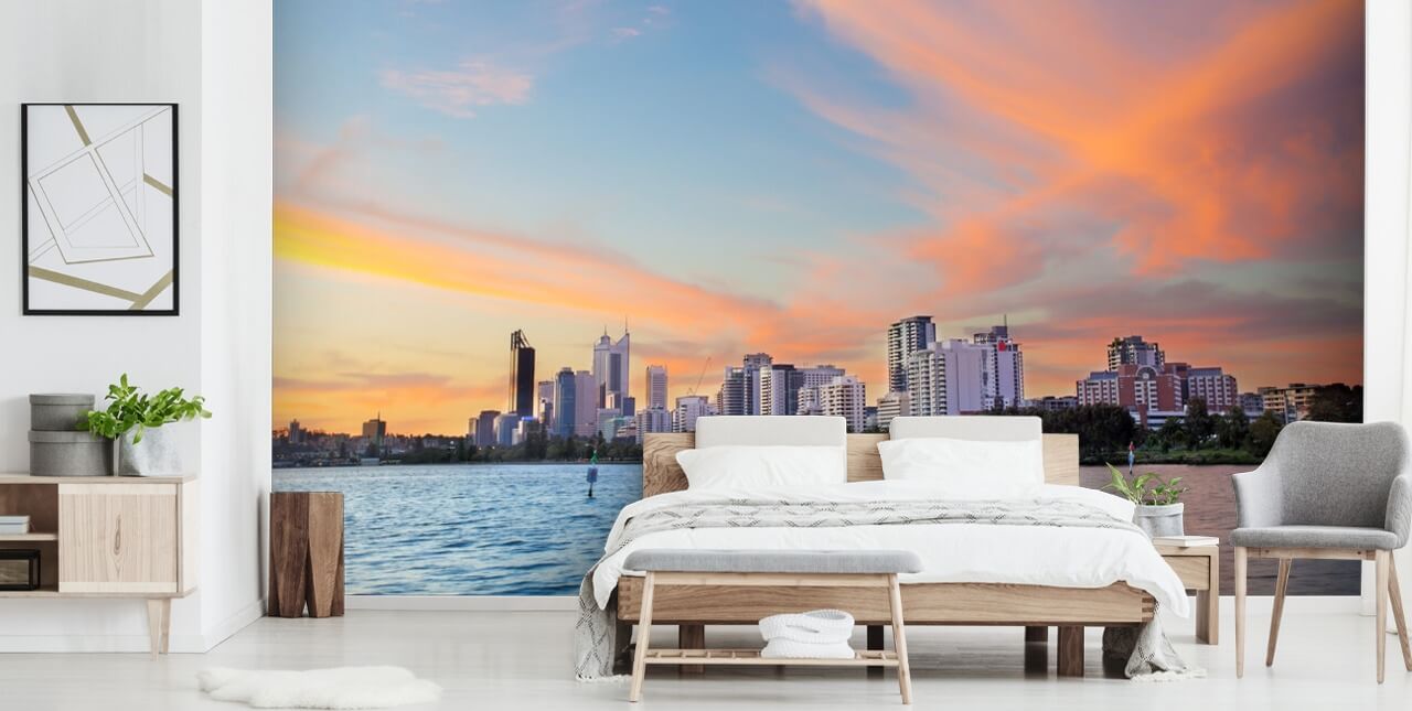 Enjoy this made to measure Perth Skyline at Sunset wallpaper mural from Wallsauce.com.