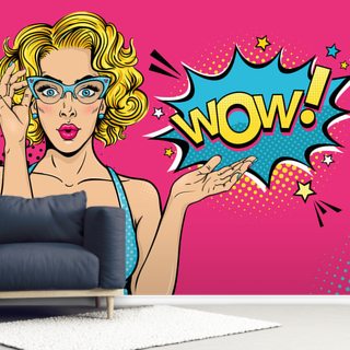 colourful customisable pop art wallpaper mural called Wow Pop Art for bedroom