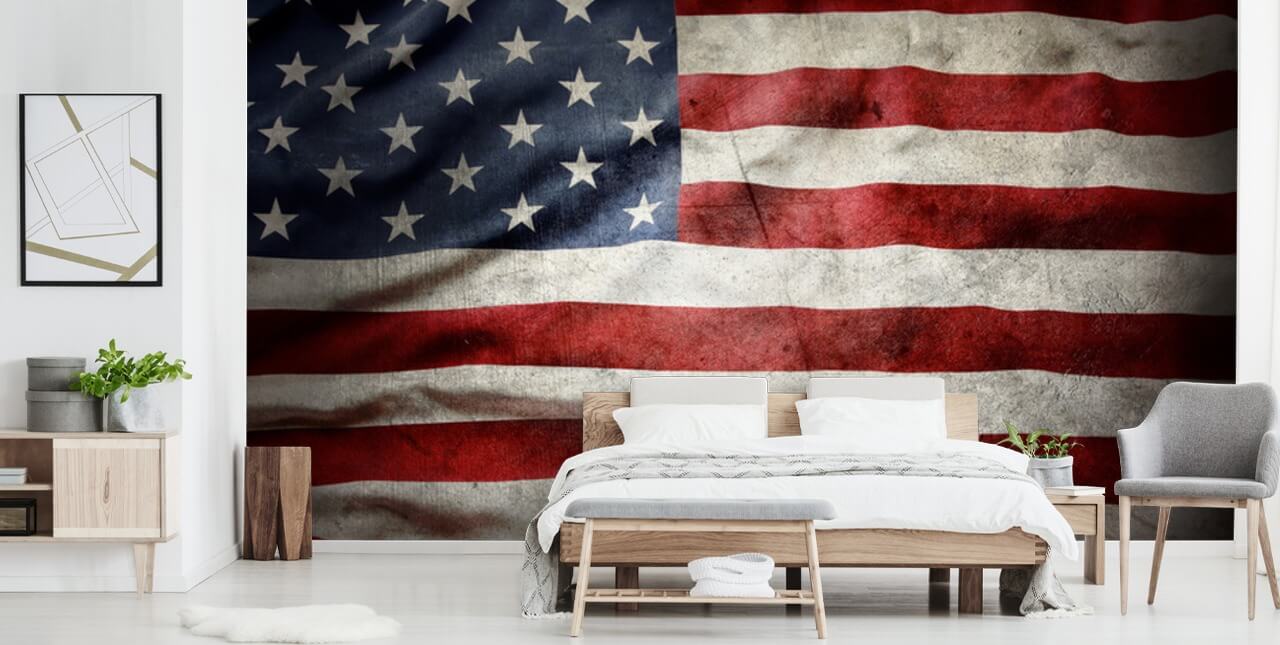 Shop this magnificent Stars and Stripes wall mural from Wallsauce.com. Custom-made to fit the wall.