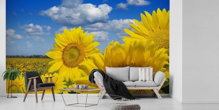 Bring the sunshine into your house with one of our many sunflower wallpaper designs. A sunflower wall mural is perfect for adding more colour to your interior design, and we have various options, including sunflower fields, close-ups of their petals and leaves, and colourful patterned sunflower wall murals.