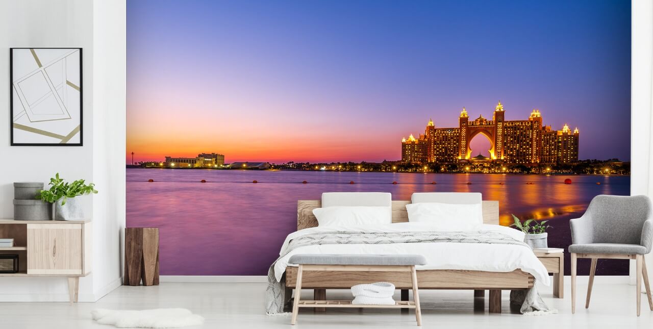 Shop this beautiful Sunset Atlantis Hotel wallpaper mural from Wallsauce.com. Custom-made to fit the wall.