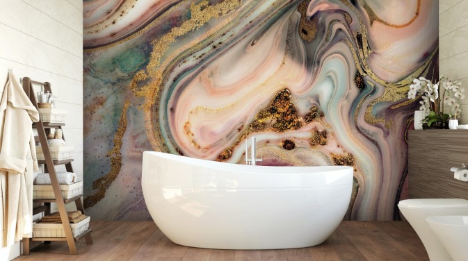 pale blue and gold customisable marble wallpaper mural called Dreamy Blue Watercolour for bedrooms, kitchens or bathrooms