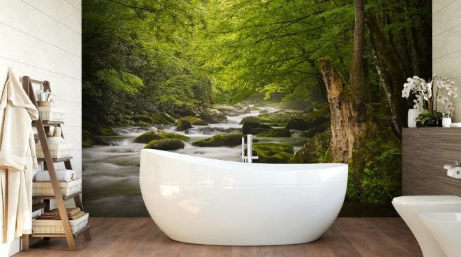 green customisable forest wallpaper called Panoramic Woodland for bedrooms
