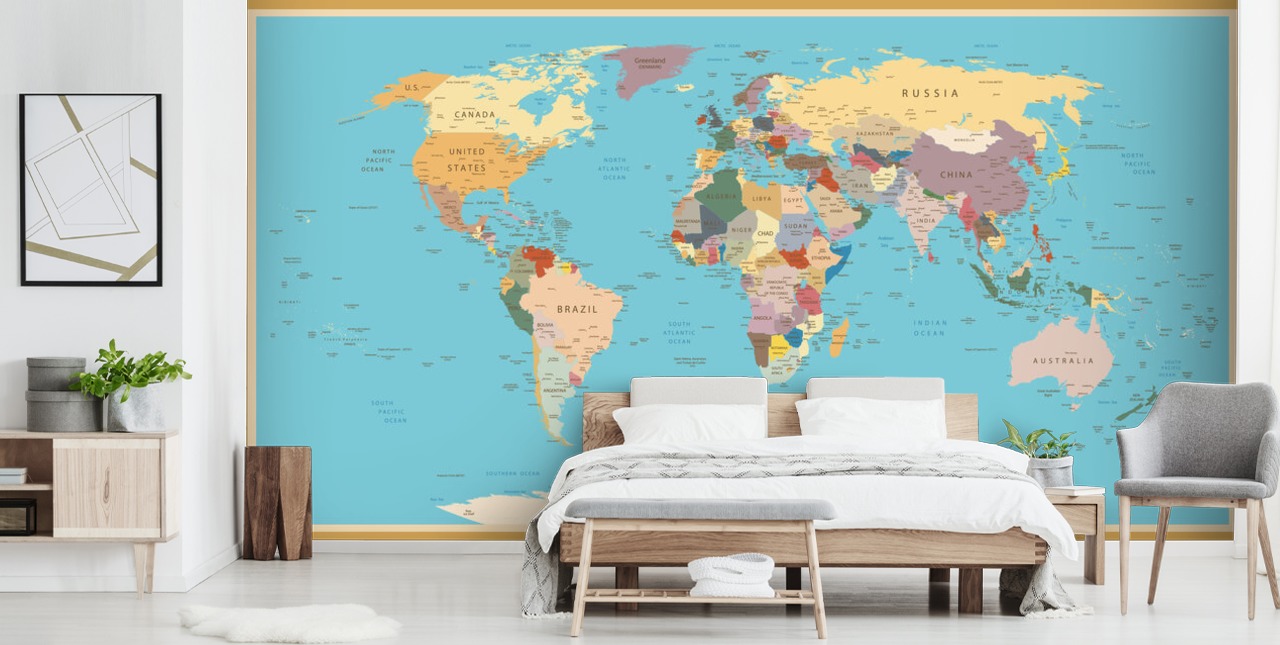 Stunning Vintage World Map wall mural from Wallsauce. This high quality Vintage World Map wallpaper is custom made to your dimensions. Easy to order and install .
