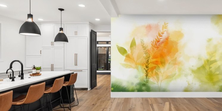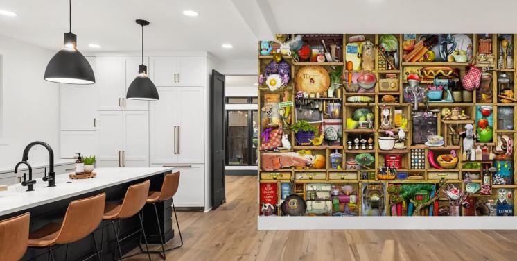 lemon and orange kitchen wallpaper mural by Andrea Haase for kitchens, mudrooms and cafes