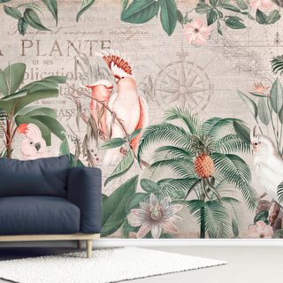 Bring jungle vibes to your bedroom, living room or hallway with this tropical jungle wallpaper by Andrea Haase. Featuring mellow, vintage tones, this jungle wallpaper mural captures on trend palm prints and fun toucan birds.