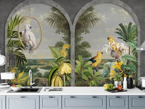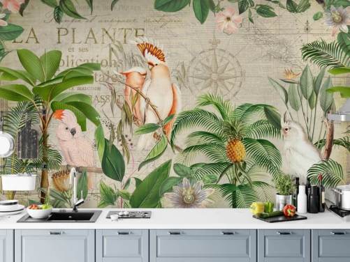Nostalgic Cockatoo Jungle Mural by Andrea Haase