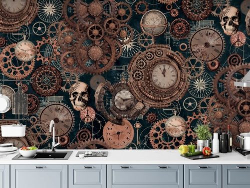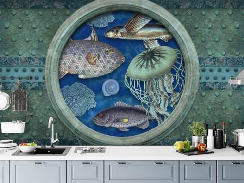 lemon and orange kitchen wallpaper mural by Andrea Haase for kitchens, mudrooms and cafes