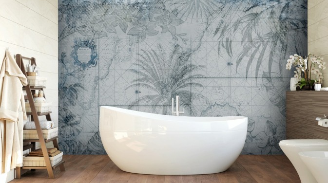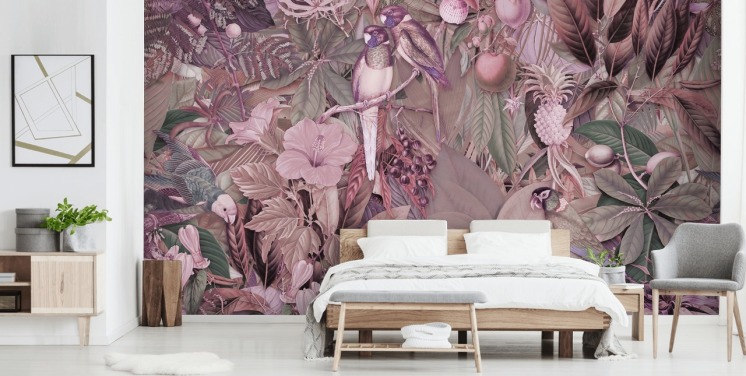 colourful tropical bird wallpaper mural called Tropical Summer Garden by Andrea Haase for bathrooms and kitchens