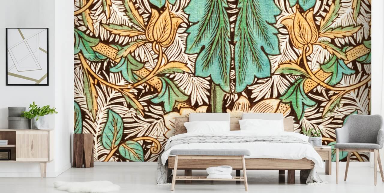 Inspired by a William Morris design, this gorgeous Honeysuckle Pattern wallpaper mural really focuses in on the beautiful detail of this famous textile designer and artist’s work. Just see the curl of the white petals, the scalloping of the green leaves and the swirls and twirls of the ivy as it interweaves between it all.