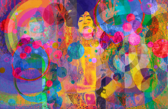 colourful customisable abstract wallpaper mural called Celestial by Anne Farrall Doyle for kitchens, bedrooms and living rooms