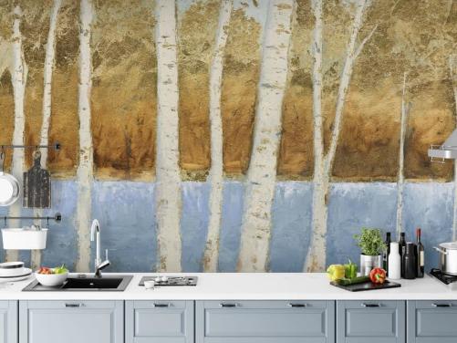 abstract lake and birch tree wallpaper