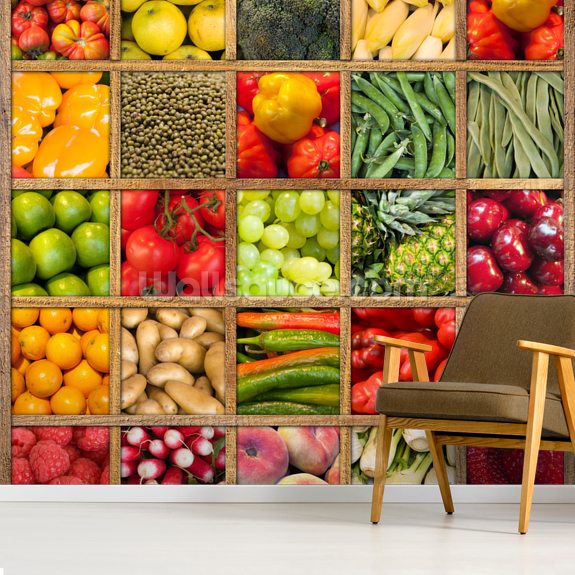 Remind yourself to eat your five-a-day every day with this custom-made Fruit and Vegetable Collection wallpaper mural.