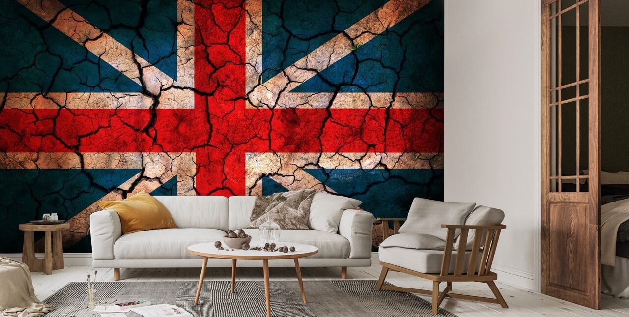 Shop the latest trends with this cool, custom-made Industrial UK Flag wallpaper from Wallsauce.com!