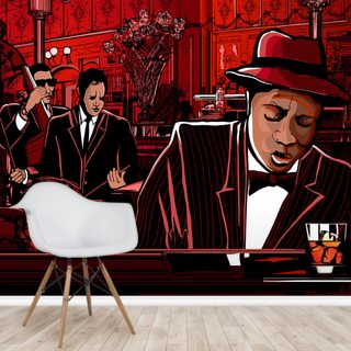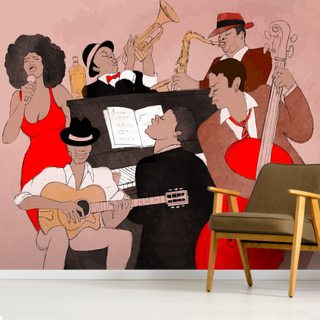 illustrated jazz wallpaper mural called Jazz Band and Dancers for homes, schools and venues