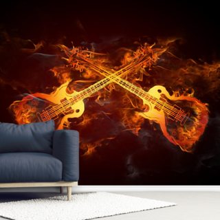 orange and red guitar wallpaper mural called Guitars on Fire at Wallsauce for bedrooms, bars and venues