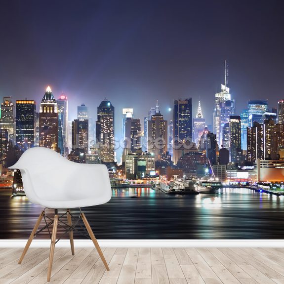 Bring the magic of New York to your home with this custom-made New York Manhattan Skyline Night wallpaper mural.