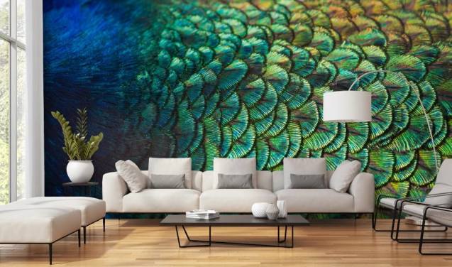 green peacock wallpaper mural called Tropical Green Peacock for bedrooms and living rooms