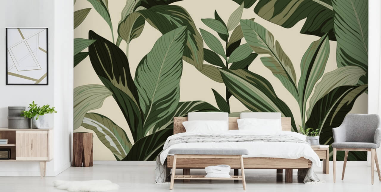 We adore this Pop Art Leaves wallpaper - custom-made to fit the wall perfectly. Ideal for a tropical living room, an exotic bedroom or a green-themed guest bathroom!
