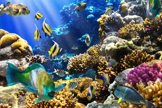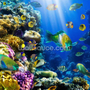 colourful customisable fish wallpaper mural called Photo of a Coral Colony for kid's bedroom