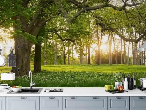 green and white custom palm leaf wallpaper mural called Green Palms for kitchens