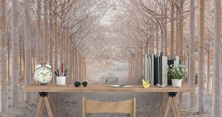 snowy forest wallpaper in commercial office