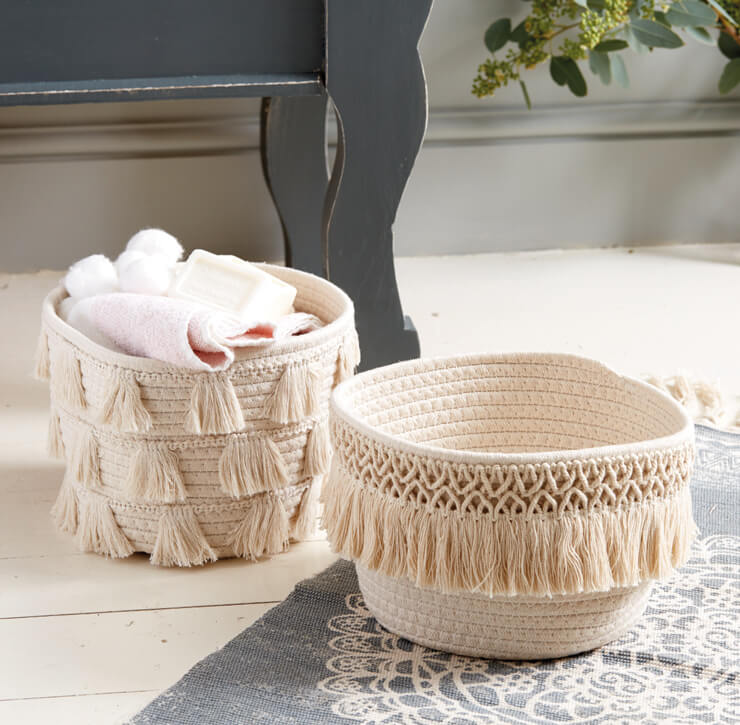 Everyone loves extra storage and if they look as lovely as these tassel edged fabric baskets, it’s a no brainer. These gorgeous ‘70s style baskets will come in handy for anyone so they will be a big winner when you give them to your family and friends. Great for storing face cloths and cotton buds in the bathroom, a unique plant pot holder or for keeping all your bedroom trinkets inside, these baskets are versatile as well as pretty. What more could you ask for?
