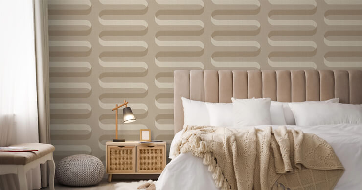 folding ribbon - wheat boho pattern wallpaper in a master bedroom