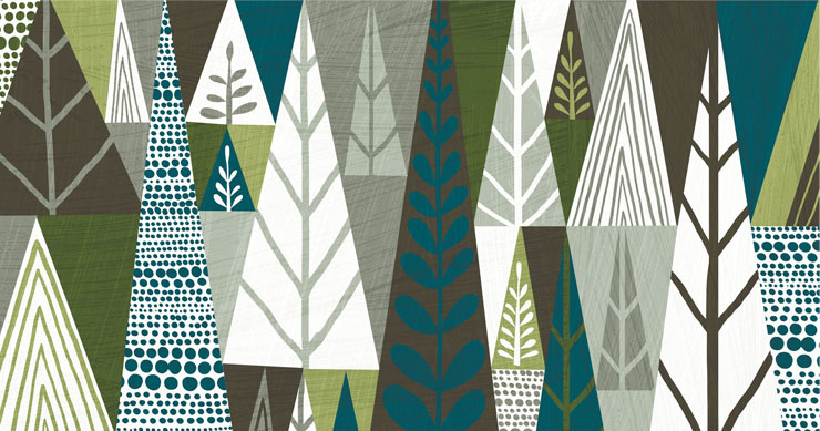 This gorgeous wallpaper mural is part of the Michael Mullen collection. The interesting use of triangles as trees combined with the leafy pattern makes this wall mural an unusual yet lovely vision to look at.