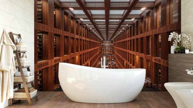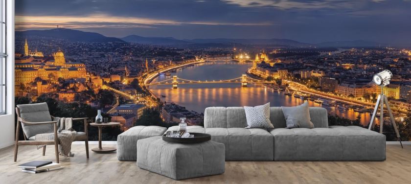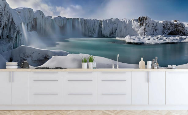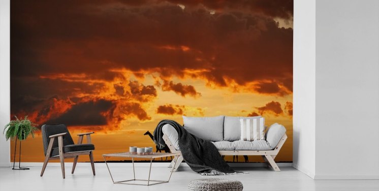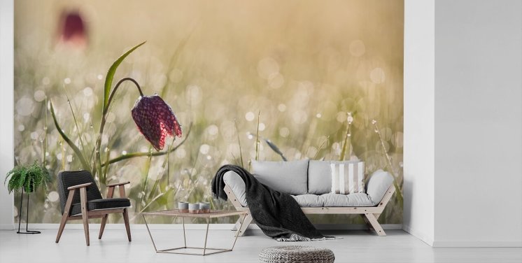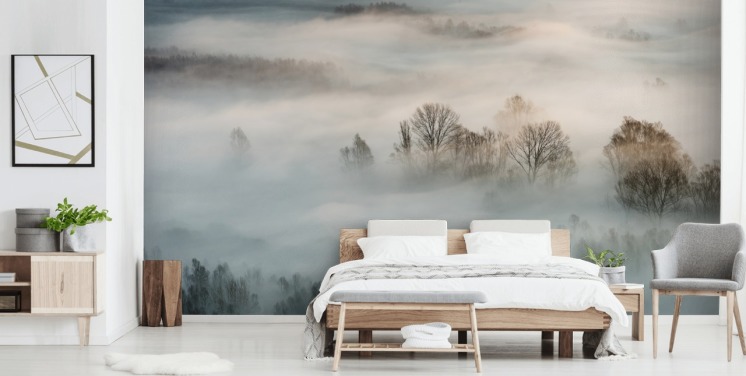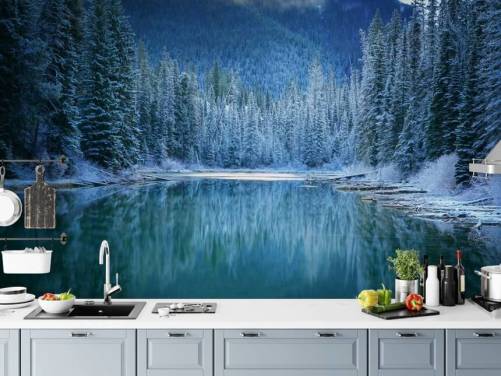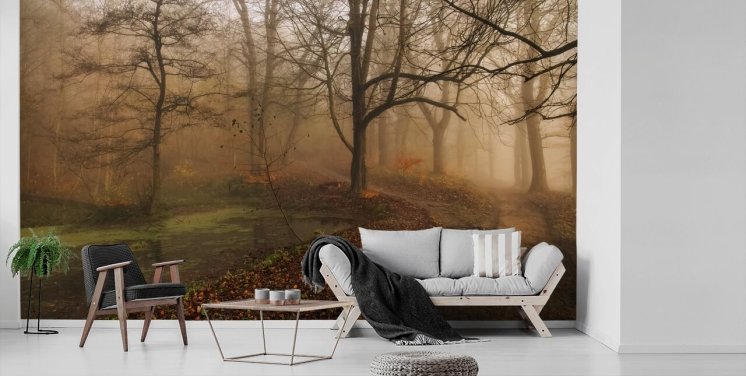 orange woodland with stone bridge reflection wall mural called Autumn Lake by 1x Photography for kitchens, bathrooms and bedrooms