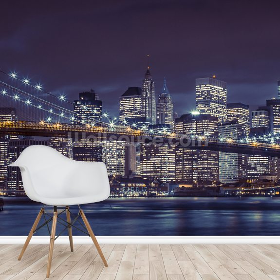 Step into the city that never sleeps with this Brooklyn Bridge Moody Blue wall mural.