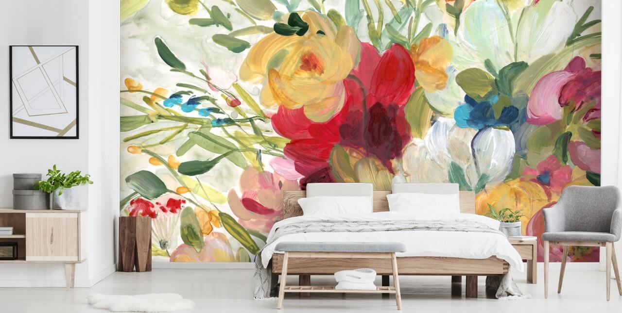 We think that this colourful flower wallpaper would look stunning in a vibrant living room. Place it on the wall behind your yellow couch and paint the walls in a neutral tone. To order, just call us or fill out the form on this page.